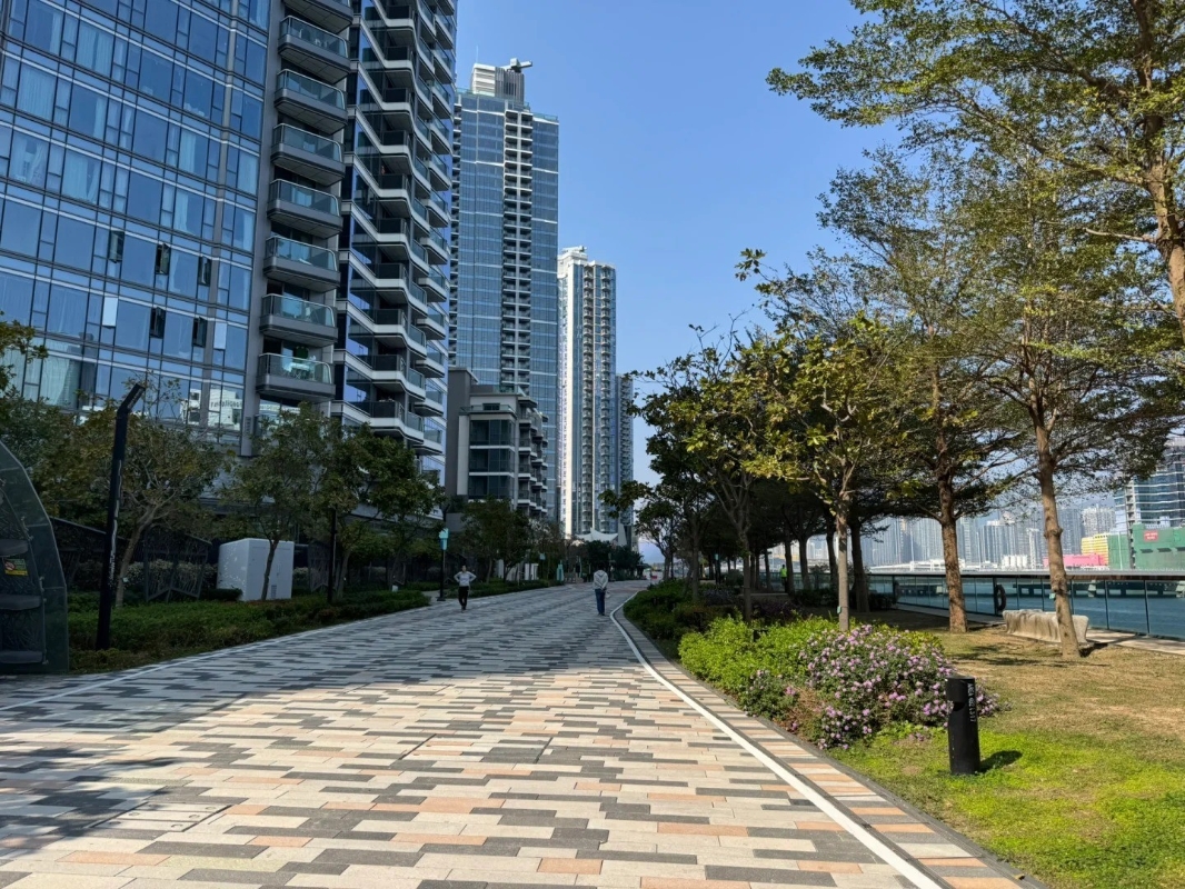 啟德空中花園建於跑道上,行人道寬闊。(香港中通社記者 黃璇攝)