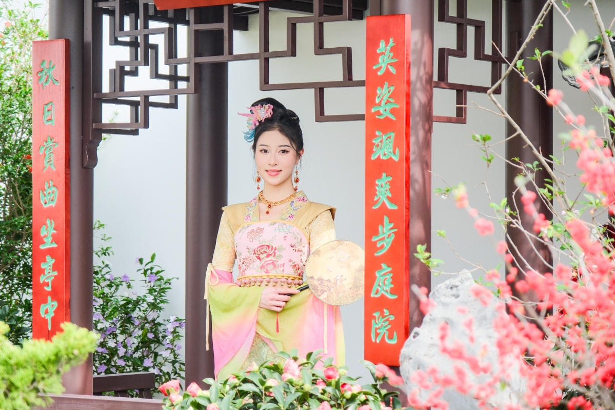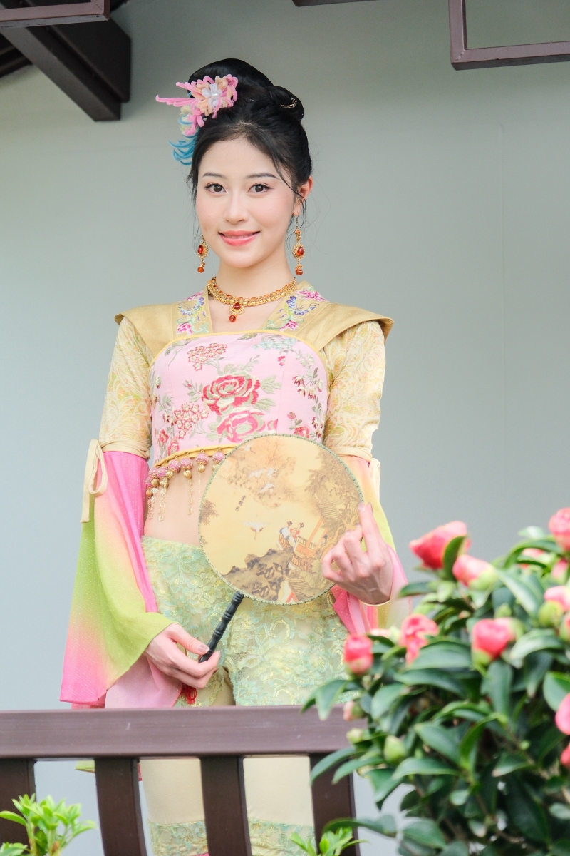 香港花卉展造像攝影活動上2024年香港小姐冠軍倪樂琳擔任模特 【編輯:洪少葵】