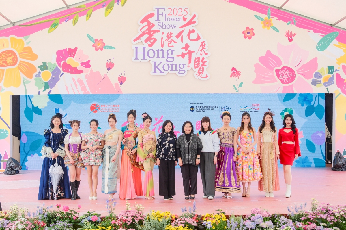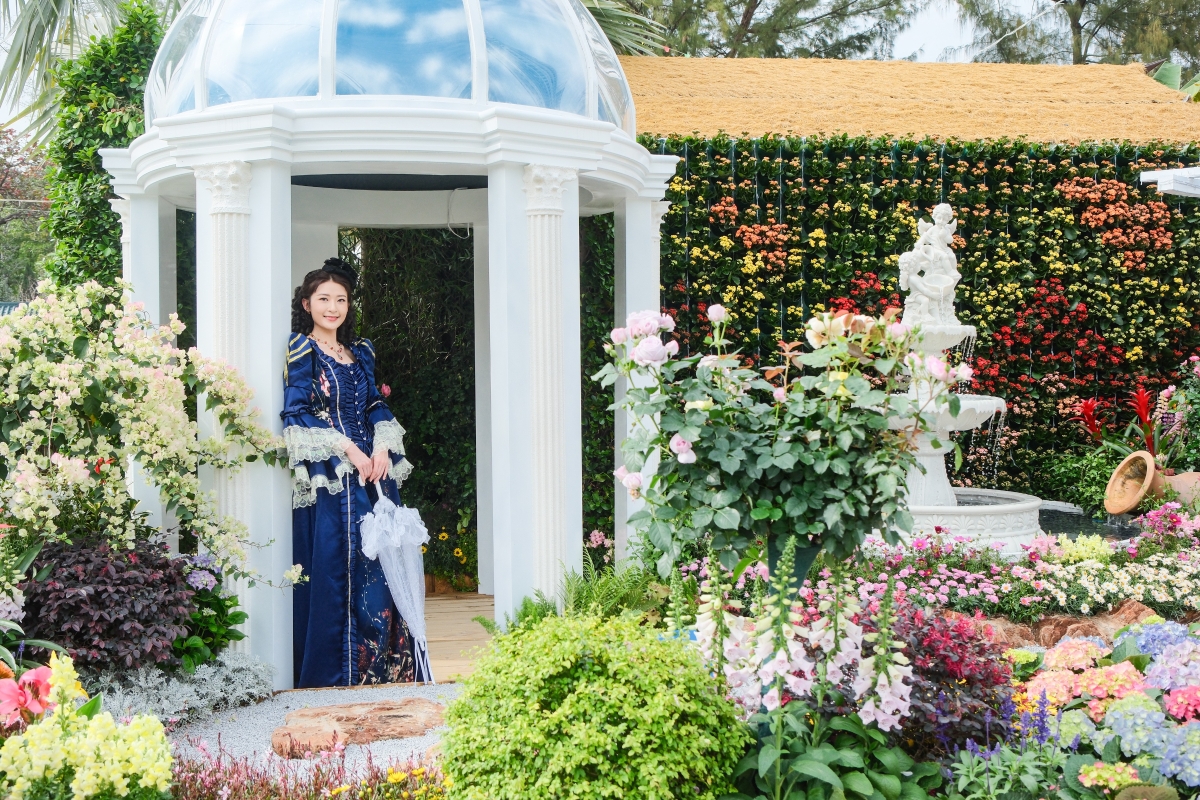 香港花卉展造像攝影活動上2024年香港小姐冠軍倪樂琳擔任模特