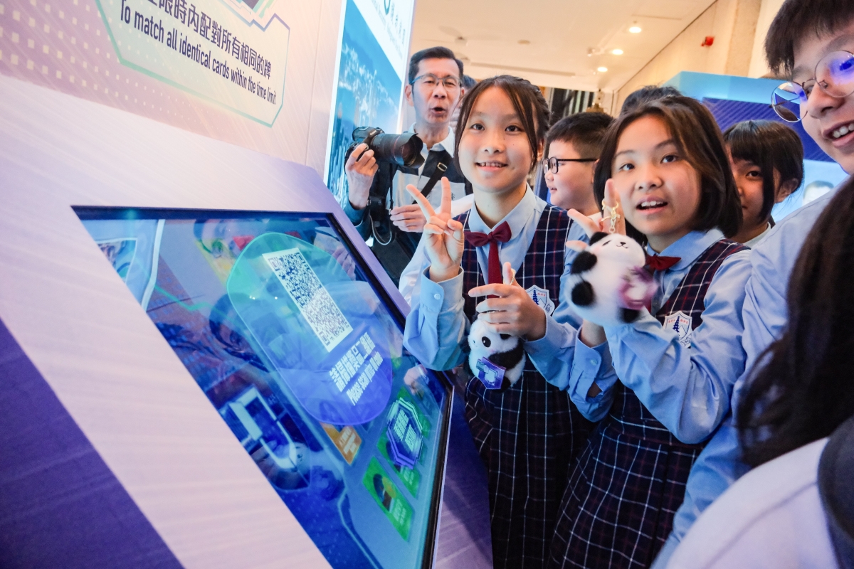 機器人導賞員與香港特區政府教育局局長蔡若蓮和學生互動