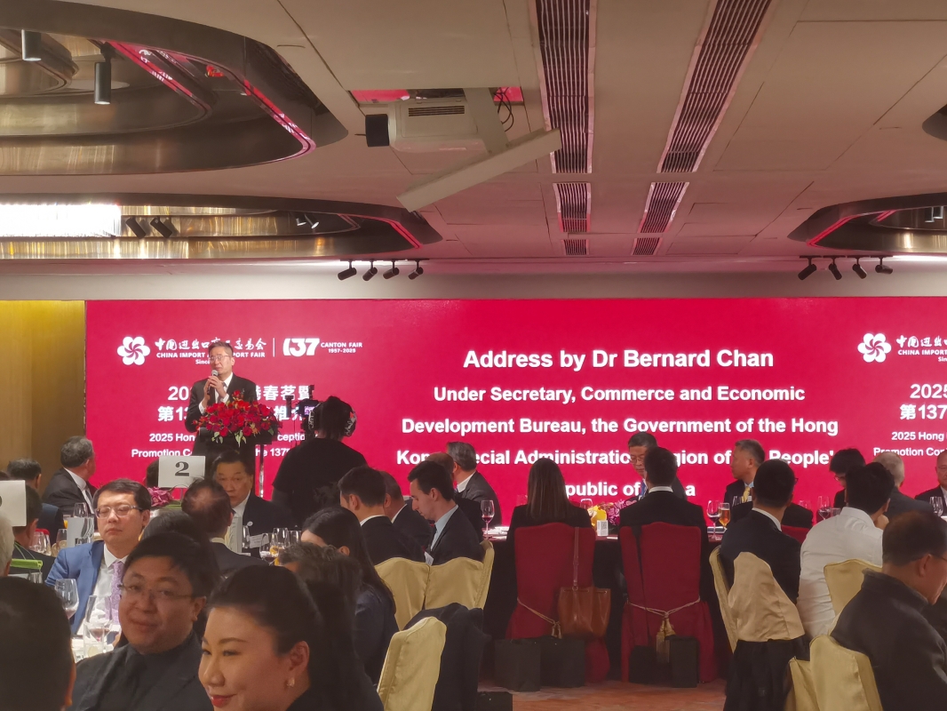 香港新聞網3月19日電 (記者 譚暢) 由中央人民政府駐香港特別行政區聯絡辦公室經濟部貿易處和中國對外貿易中心主辦的2025年香港春茗暨第137屆廣交會推介會,18日在香港灣仔舉行。中聯辦經濟部副部長兼貿易處負責人周強、香港特區政府商務及經濟發展局副局長陳百里、香港中華總商會會長蔡冠深、中國對外貿易中心副主任張思洪等出席主禮。