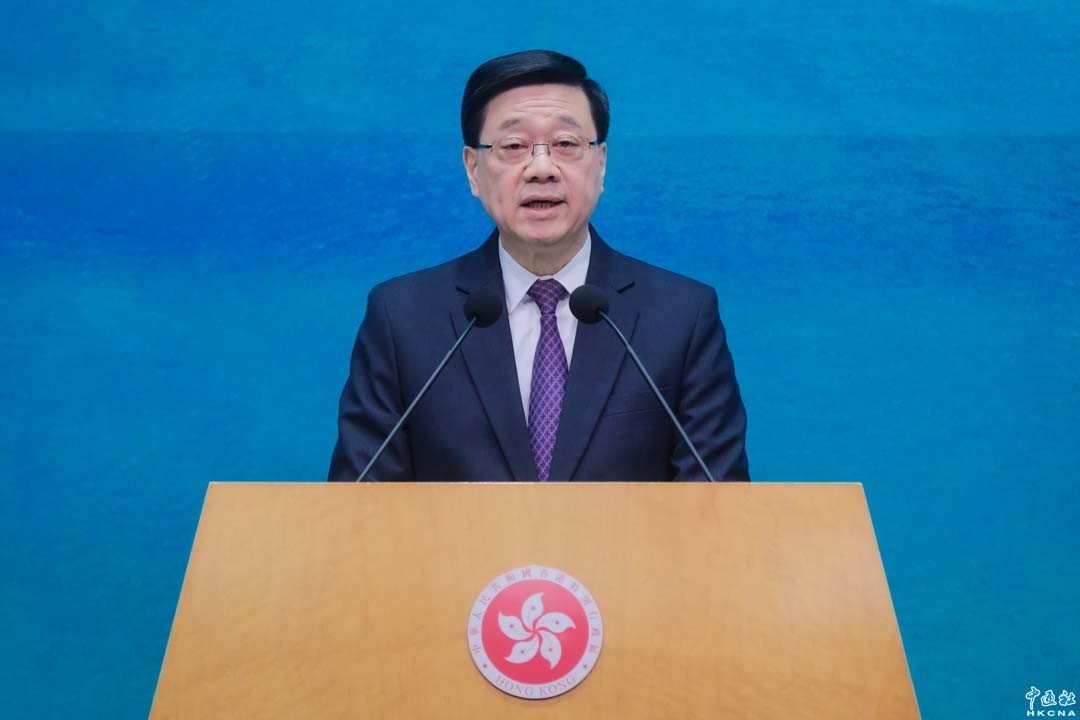 3月18日,香港特首李家超回應長和擬售巴拿馬港口:須合法合規。(香港中通社記者 許其皓攝)