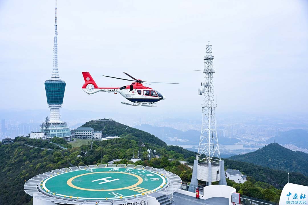 3月18日,深圳市梧桐山第十屆毛棉杜鵑花會暨大梧桐低空花遊啟動儀式在羅湖區梧桐山梧桐閣舉行。隨著本屆花會正式啟幕,羅湖區發布多條大梧桐低空花遊限時航線,並推出低價惠民低空花遊產品,帶市民360度解鎖花會遊玩攻略。圖為中信海直載客觀光飛行。(聞子 攝)
