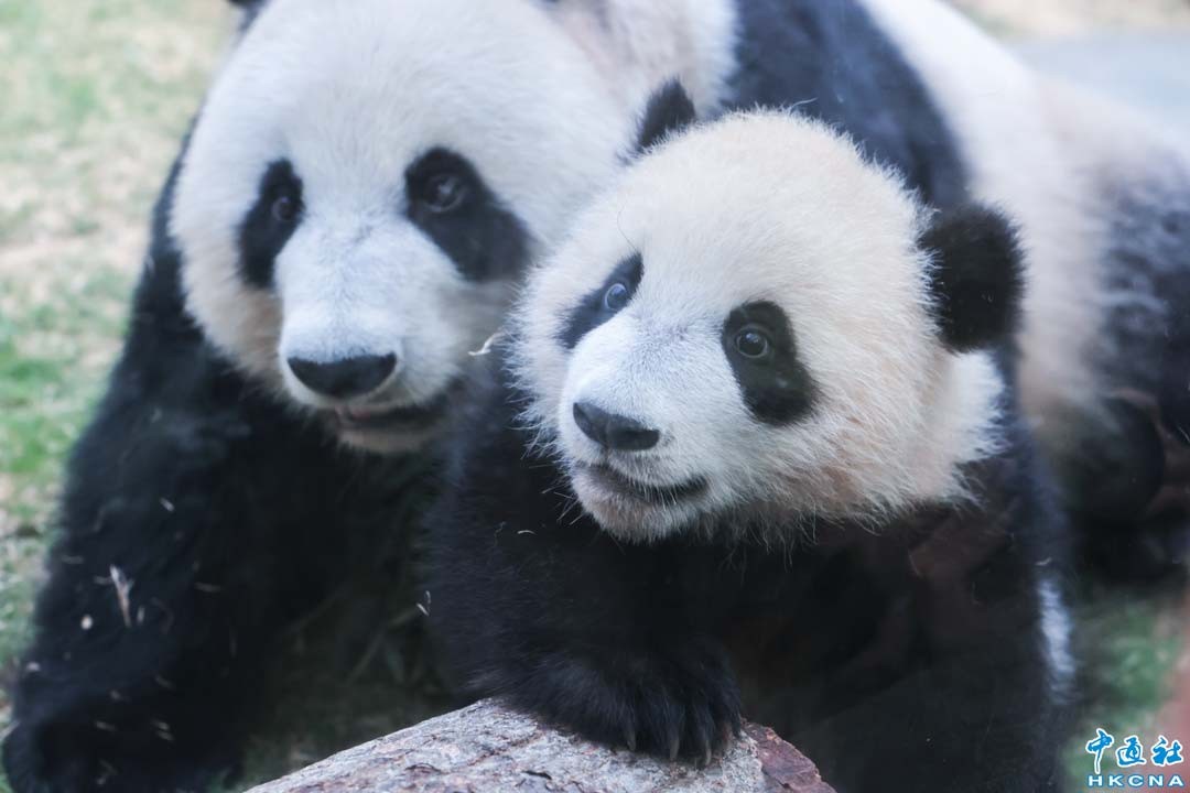3月21日,海洋公園率先安排“盈盈”和龍鳳胎寶寶與傳媒見面。港產大熊貓龍鳳胎“家姐”、“細佬”,22日起會與媽媽“盈盈”一起在香港海洋公園“大熊貓之旅”展館與公眾見面。(香港中通社記者 謝光磊攝)