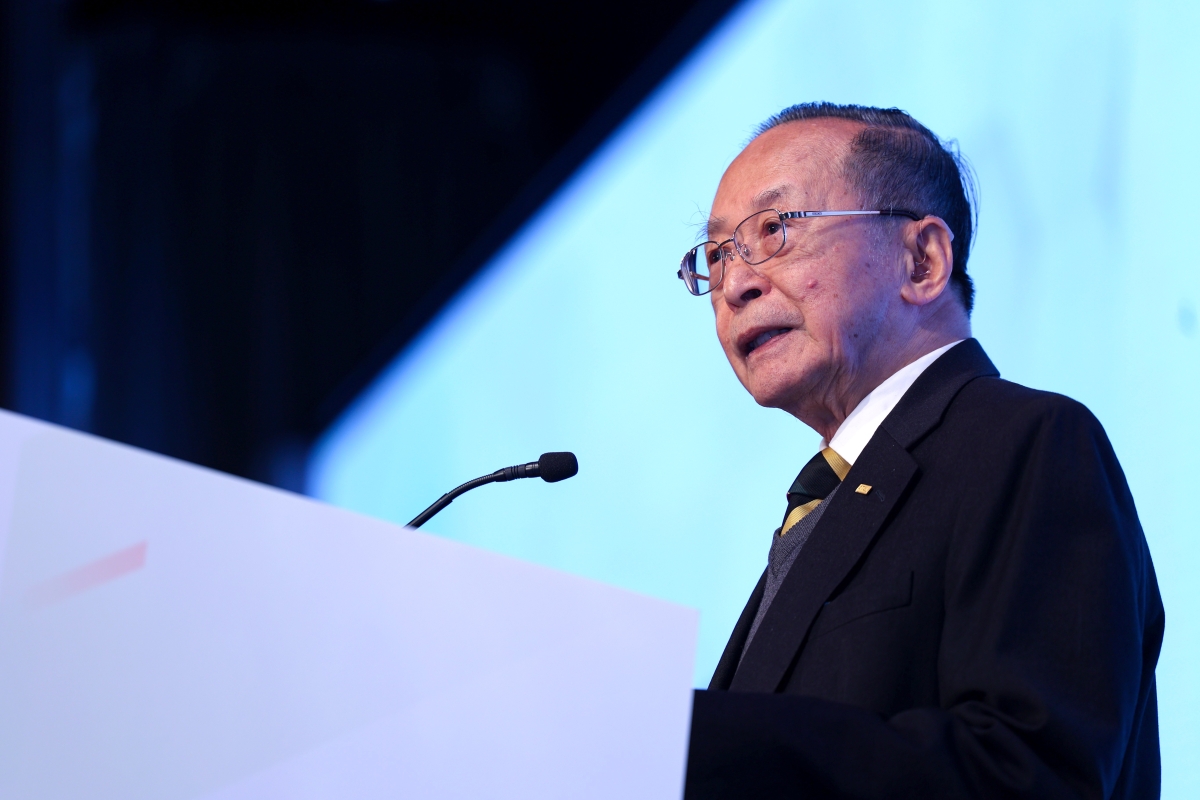 潘樂陶表示期望研究院將推動相關科技的創新與交流,為香港、國家及全球帶來實質貢獻。(香港中通社記者 黃璇攝) 潘樂陶慈善基金創辦人兼理大院士潘樂陶在致辭時引用了海內外多家媒體對氣候變化預警的報道,強調各界攜手應對這一日益嚴峻的挑戰已迫在眉睫。他表示:“透過科研與創新技術,提升基礎設施的氣候適應韌性,勢在必行。”他十分高興能支持潘樂陶韌性基礎設施研究院的成立,期望研究院日後能成為全球領先的研究中心,聚焦城市與鄉郊地區的氣候適應型韌性基礎設施,推動創新及政策交流,並為香港、國家及全球社會制定基礎設施的實踐指引和標準。