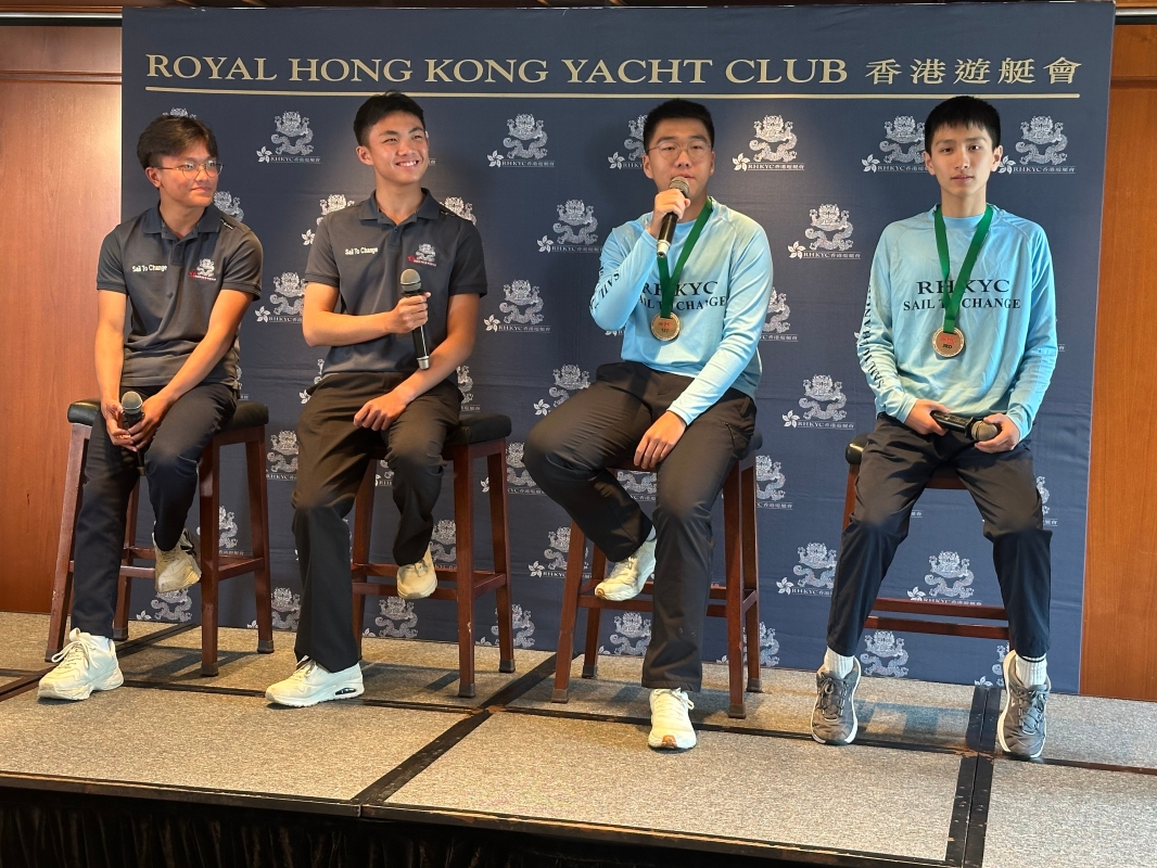 香港遊艇會會長彭孝書 隨後,香港遊艇會社區項目“伴我啟航計劃”的四位畢業生羅俊軒、黃梓龍、蘇天賜、張智皓,分享自己與帆船運動結緣的經歷,及透過“伴我啟航計劃”成功找尋的人生目標。 羅俊軒、黃梓龍二人均為17歲,2021年通過選拔成為香港遊艇會“伴我啟航計劃”的第一屆學員。兩人表示,他們參與計劃之時正值新冠疫情,因此只要限聚措施稍為鬆綁便立即抓緊時間訓練,即使要戴著口罩出海亦在所不辭。