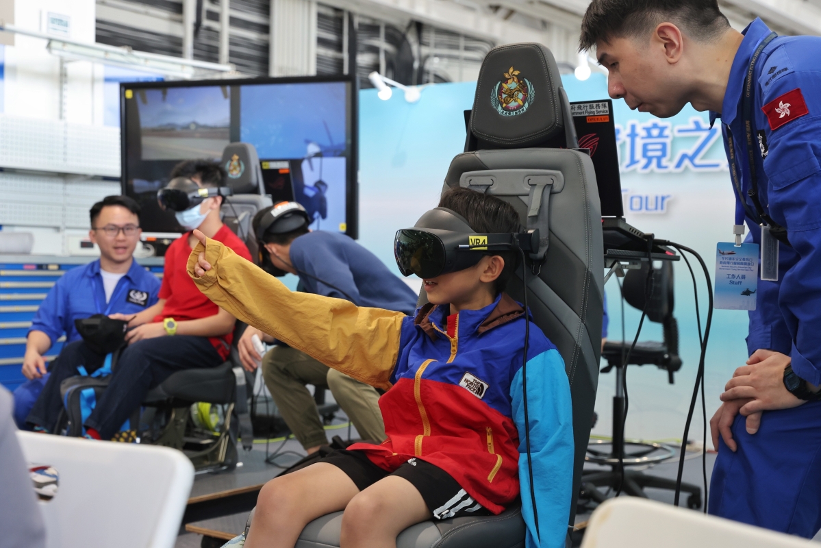 小朋友通過虛擬實境體驗飛行服務隊工作