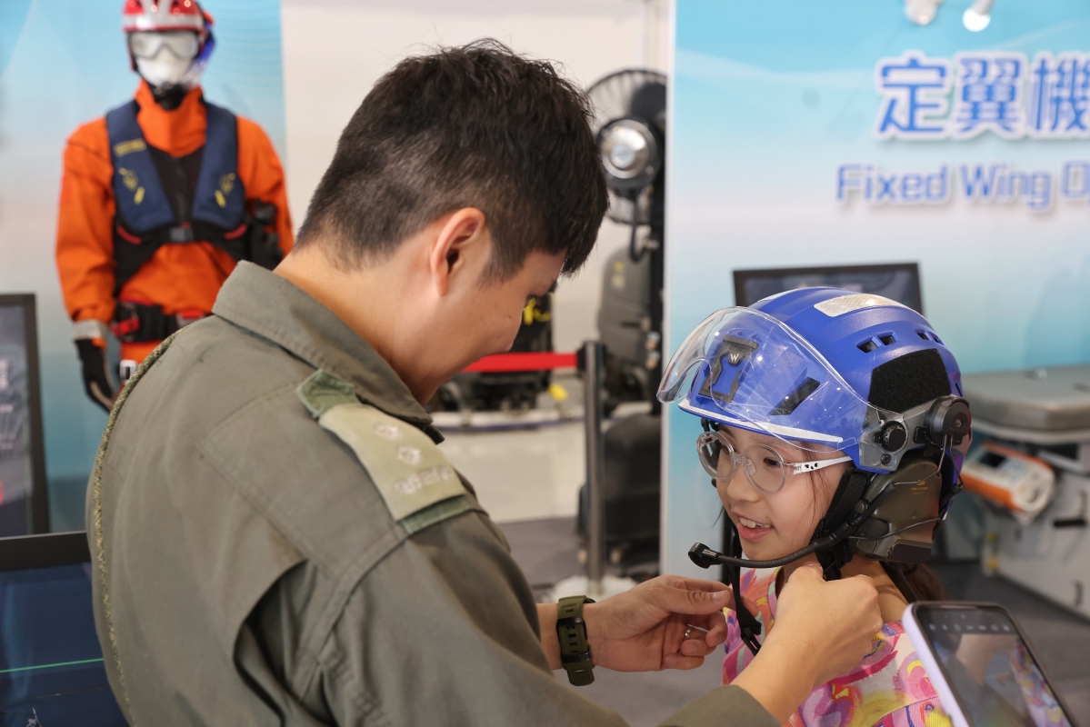小朋友體驗穿戴飛行服務隊裝備 【編輯:洪少葵】