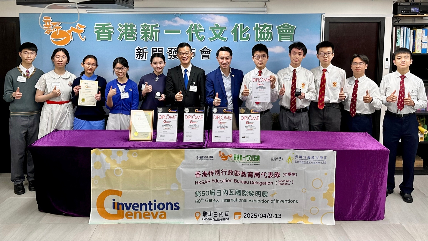 香港特區政府教育局代表隊(中學生)在日內瓦國際發明展再創佳績香港新聞網4月16日電 “日內瓦國際發明展”創辦於1973年,是一年一度由瑞士聯邦政府、日內瓦州政府、日內瓦市政府及世界知識產權組織舉辦的大型國際展覽,也是世界上規模最大、最具代表性的發明展。“日內瓦國際發明展”至今已經進入第50屆,這是一項表揚創新發明的年度國際盛事,全球頂尖科研學者雲集,發表最新的前沿科研成果和發明,同時也有成千上萬的觀眾參觀展覽及洽談合作。 推動STEAM教育是香港特區政府的施政重點之一。為了配合國家2035年建成“教育強國”、“科技強國”、“人才強國”的戰略目標,助力香港建設國際創科中心,極需培育一大批高質素的科技創新人才,推動官-產-學-研-商的有機結合。有見及此,過去十多年,特區政府教育局一直委託香港新一代文化協會,組織在創科及發明方面有傑出表現的香港學生參加多個全球規模最大的創科及發明大賽,讓香港學生在國際舞台上盡顯所長,展示香港創科教育的實力。 今年,由特區政府教育局資助機構香港資優教育學苑委托香港新一代文化協會,負責組織香港特區政府教育局代表隊(中學生)參加“第50屆日內瓦國際發明展”。為做好是次參賽籌備工作,香港新一代文化協會於去年12月24日舉行了“國際科學比賽2025香港賽區選拔賽”,邀請了9位專家/學者組成評審委員會。先從報名的80個項目(來自34間本地學校和8間國際學校)中,選出17個項目進入決賽。再經過嚴謹的程序,甄選出5個項目(11位學生)參加“第50屆日內瓦國際發明展”(另選出5個項目(10位學生)將於5月中旬赴美國 俄亥俄州 哥倫布市參加“第76屆再生元國際科學與工程大獎賽(ISEF)”。 因此,今年的香港特區政府教育局代表隊(中學生),共有5個項目(來自7間學校、11位同學)。代表隊於2025年4月9-13日在瑞士日內瓦Palexpo展覽館參加為期5天的“第50屆日內瓦國際發明展”,向國際社會展示香港STEAM教育的成果。 最終,香港特區政府教育局代表隊(中學生)不負所託,榮獲3項銀獎、1項銅獎再創佳績,為港爭光!