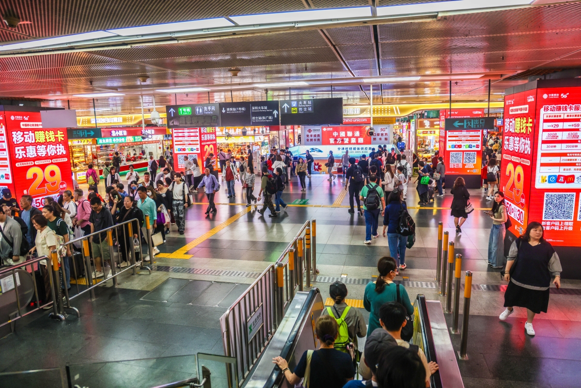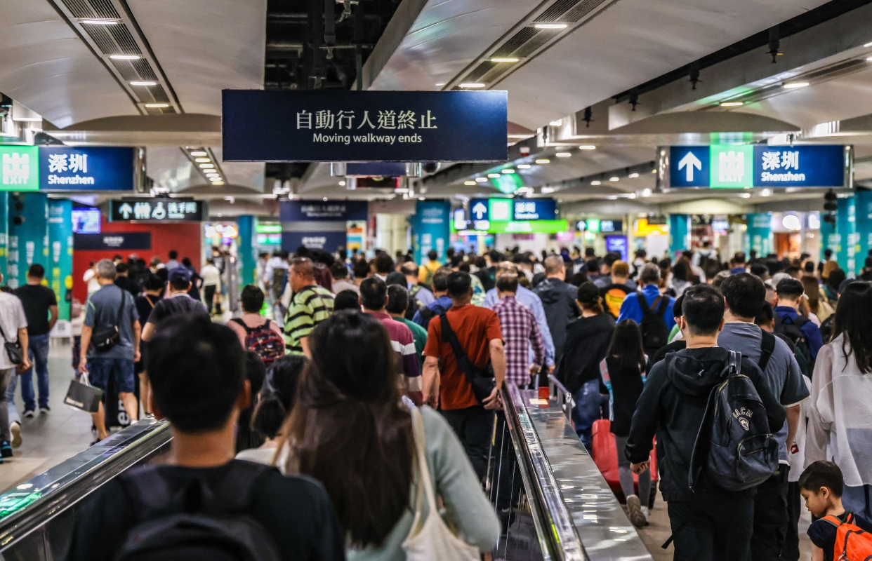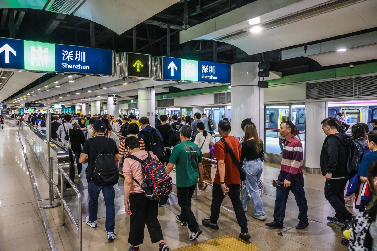 中通社記者當天上午在深港陸路口岸直擊,北上人潮洶湧下,關口運作暢順,出入境通道全開,從香港到深圳過關不到半小時(曹文毓攝)