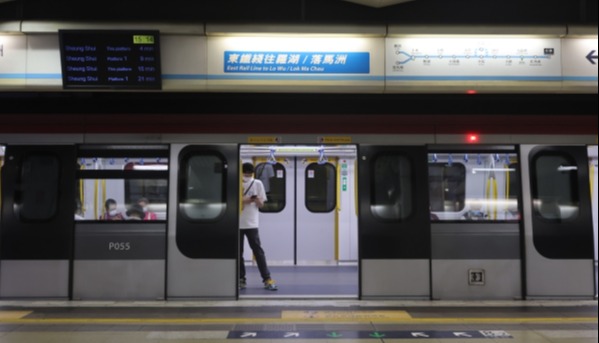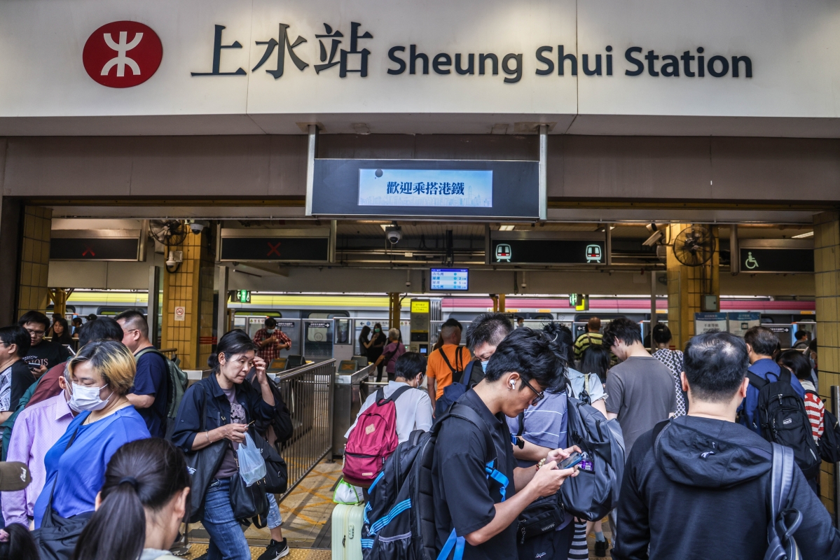 在港鐵上水站,前往羅湖和落馬洲的列車趟趟都擠滿了人(曹文毓攝)