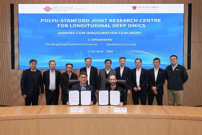 香港新聞網4月23日電 香港理工大學與斯坦福大學醫學院早前簽署合作備忘錄,共同成立“香港理工大學—史丹福大學縱向深度組學聯合研究中心”。透過結合理大在生物醫學工程、人工智能驅動的健康分析和精準醫學領域的優勢,以及史丹福大學醫學院在遺傳學和多組學方面的學術專長,是次合作旨在建立標準化的多組學衰老隊列,以研究健康老齡化與病理性衰老的生物機制,識別個人化的生物標記,及早預測與衰老相關的疾病,並推動精準醫療的發展。
