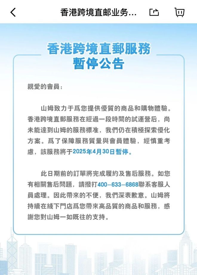 山姆4月底取消香港跨境直郵,或與這些因素有關分享到: