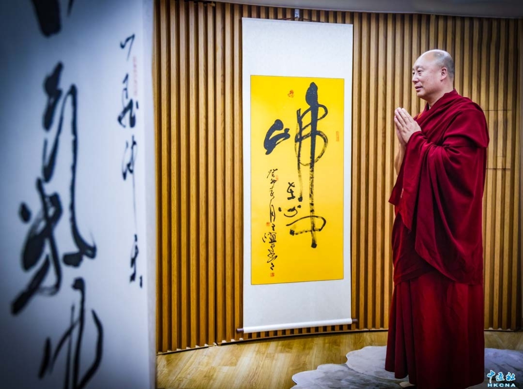 香港作為中西方文化交匯的平台,特區政府康樂及文化事務署近日宣佈,將於今年6月舉辦首屆“香港非遺月”。“神畫師”家族的第14代傳人唐卡畫師羅藏旦巴亦獲香港大學佛學院邀請,為佛像點睛開光,並於6月中旬來港大授課。(香港中通社記者 曹文毓攝)