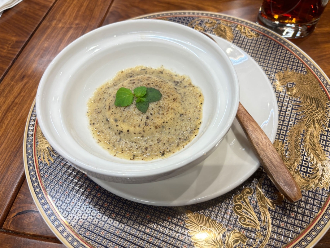松露野菌焗芙蓉蛋以滑豆腐釀入鮮冬菇、雞髀菇等野菌,口感嫩滑。(香港中通社記者 黃璇攝)