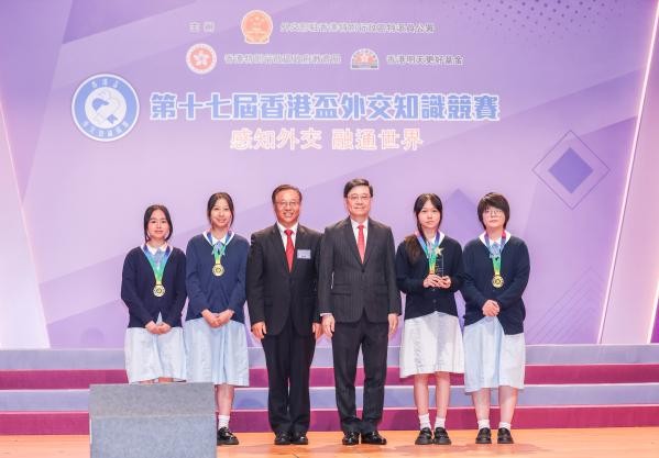 香港新聞網5月17日電 第十七屆香港盃外交知識競賽決賽暨頒獎典禮17日舉行,香港特區行政長官李家超、外交部駐港公署特派員崔建春等出席並為獲獎學生頒獎。 本屆競賽由外交部駐港公署、香港特區政府教育局與香港明天更好基金聯合主辦,以“感知外交 融通世界”為主題。競賽自2007年開辦以來,以培養香港青少年國家意識和全球視野為己任,今年在試題內容、賽制、題型等多方面進行創新,共吸引289所香港中小學近8萬名學生報名,規模再創歷史新高。