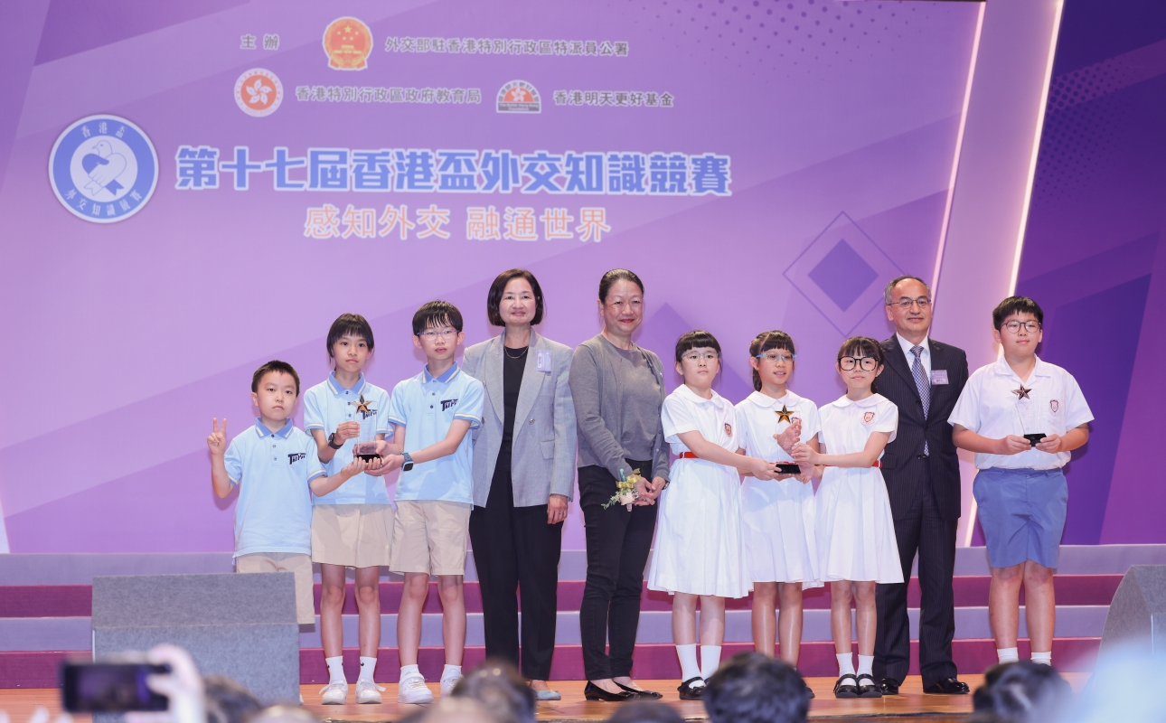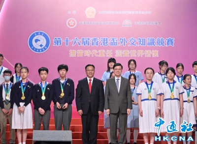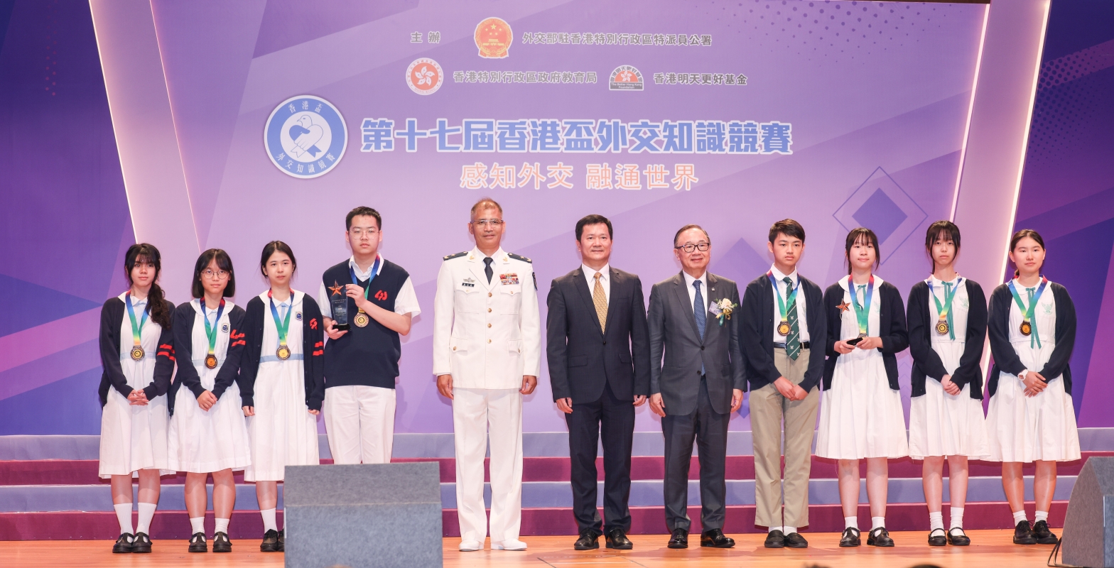 香港新聞網5月17日電(記者 曹文毓) 5月17日,第十七屆“香港盃”外交知識競賽決賽暨頒獎典禮在拔萃女書院禮堂舉行。由外交部駐香港特派員公署、香港特區政府教育局、香港明天更好基金聯合主辦的“香港盃”外交知識競賽是面向香港青少年的重要公共外交品牌活動。第十七屆“香港盃”外交知識競賽以“感知外交 融通世界”為主題,初賽共吸引289所中小學78765人報名參賽,規模再創新高。