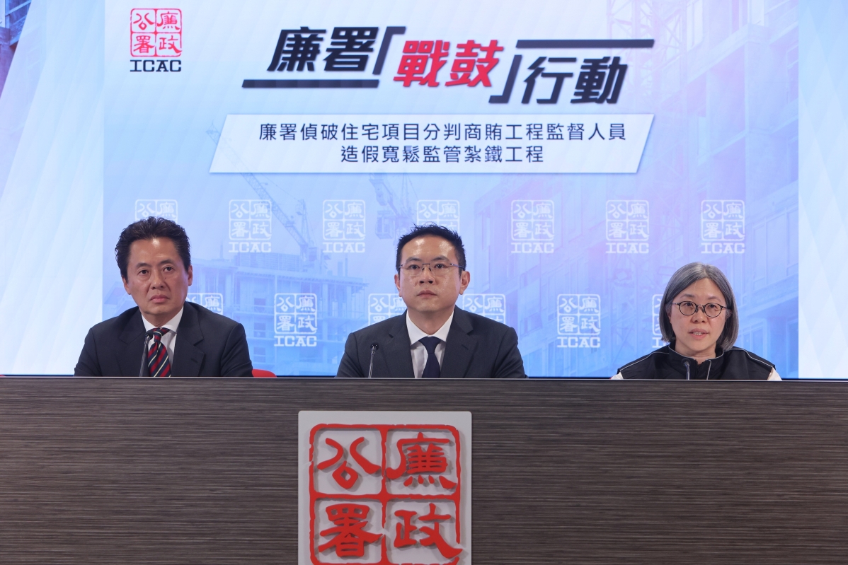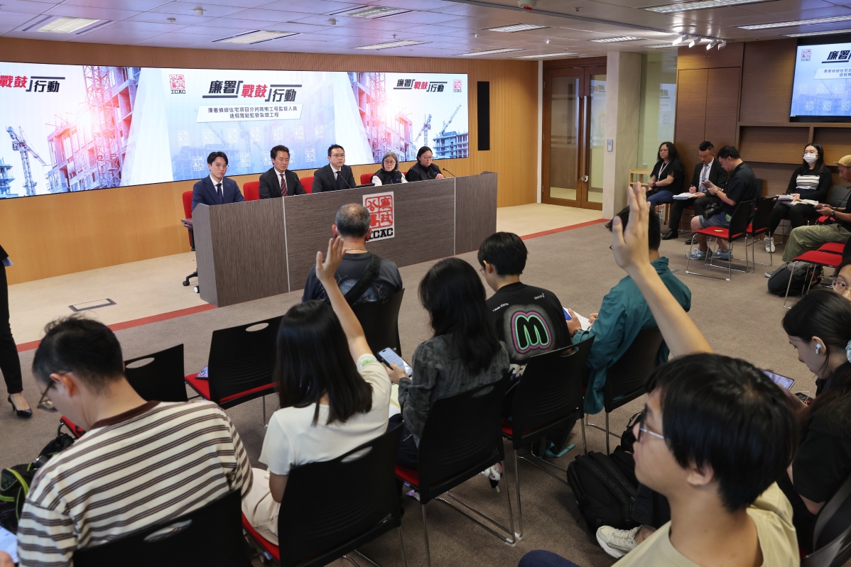 香港廉政公署舉行記者會,公佈偵破一宗涉及住宅發展項目建築地盤的貪污造假案。