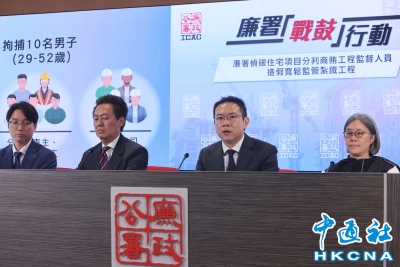 香港新聞網5月21日電(記者 謝光磊 ) 5月21日,香港廉政公署舉行記者會,公佈偵破一宗涉及住宅發展項目建築地盤的貪污造假案,地盤分判商涉嫌行賄工程監督人員換取寬鬆監管鋼筋工程。廉署公佈,上周展開代號“戰鼓”的行動,先後拘捕10名男子,調查發現全部6座樓宇的鋼筋,未按批准圖則興建。