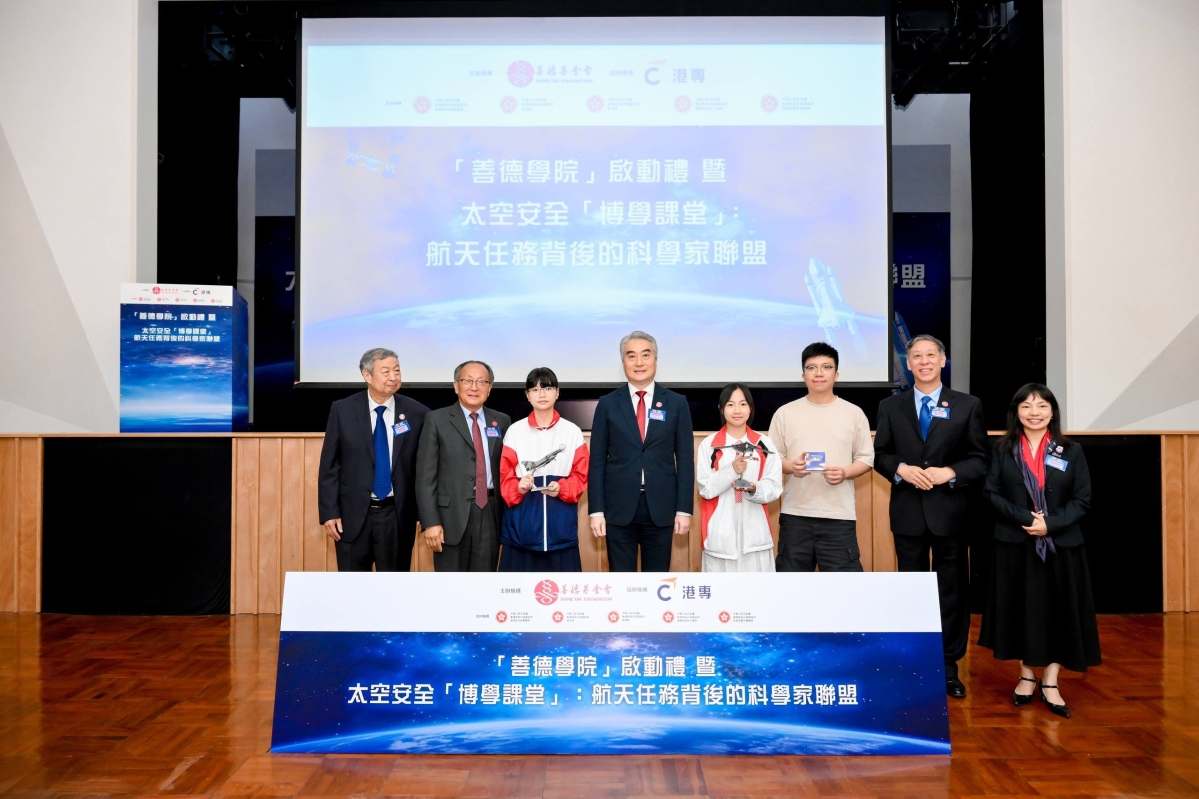 香港新聞網5月29日電(記者 譚暢)28日,由香港善德基金會主辦,港專學院協辦的“善德學院”啟動禮暨太空安全“博學課堂”在香港舉行。來自北京航空航天大學的三位一流航空航天專家,特別來到香港開講,與中學及大學生暢談航天科技、科學家精神及國防應用等方面的專業知識。 北航導彈彈體設計專業畢業的鄭彥良教授以“中國航空航天發展與科學家精神”為題,講解中國航天科技發展的歷程。他以錢學森、陸士嘉、羅陽、蘇東林及桂海潮等科學家的故事,解讀“愛國、創新、求實、奉獻、協同、育人”的科學家精神,透過講座啟發青年對科研的熱情,並強調自主創新對國家安全的重要性。