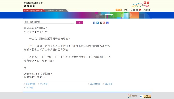 香港新聞網5月31日電 香港警方31日呼籲市民提供一名在牛頭角失蹤男子的消息。