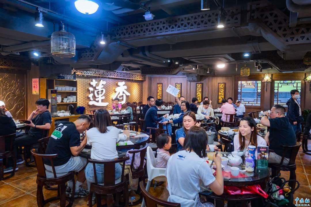 早前,香港百年老字號茶樓蓮香樓在尖沙咀開設首間分店,連日來吸引了不少市民前來打卡、品嘗美食,新店分為上下兩層,面積超過9,000平方呎,每日24小時營業,帶來全新飲茶文化。(香港中通社記者 許其皓攝)