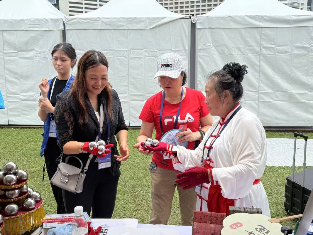 香港新聞網6月3日電 第三屆家鄉市集嘉年華近日在香港隆重舉行,今年特設運動互動體驗區,通過互動遊戲鼓勵市民多做運動、響應和支持全運會。香港河北青年會的保定健身球項目,連日來吸引外國遊客和年輕人體驗,帶動香江傳承這一河北省級非物質文化遺產。