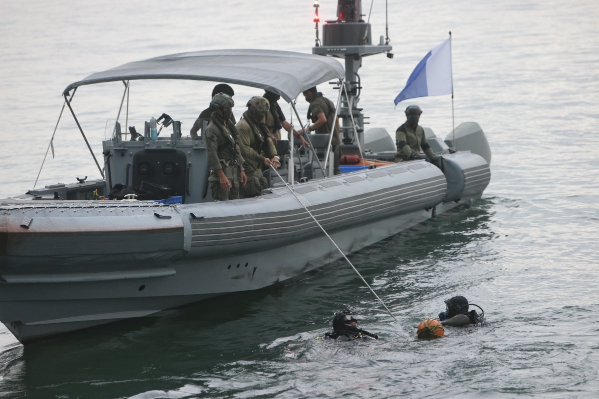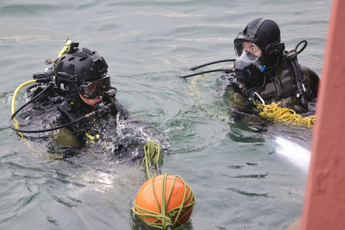 香港警方特別任務連(飛虎隊)水鬼隊搜索涉案的證物。 【編輯:洪少葵】