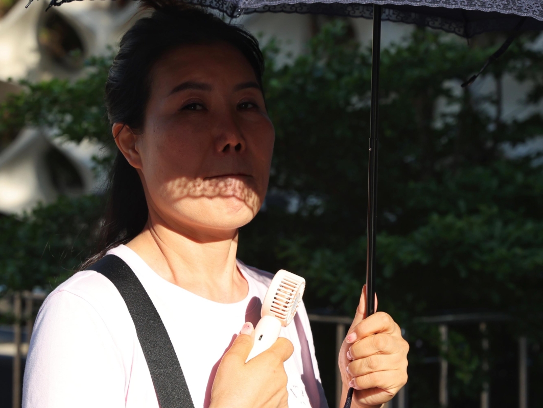 市民手持小風扇遮陽傘出行 【編輯:洪少葵】
