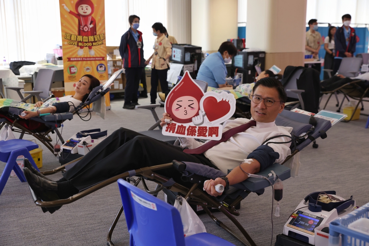 香港新聞網6月11日電(記者  謝光磊 ) 6月11日,香港立法會舉行捐血日活動,紅十字會輸血服務中心的流動捐血隊到立法會綜合大樓擴建後的新活動廳為議員及職員提供捐血服務。醫務衛生局局長盧寵茂出席活動並致辭。
