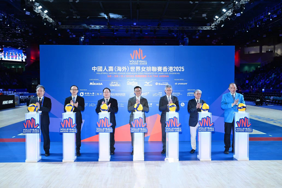 香港新聞網6月19日電 6月18日晚,由中國人壽(海外)冠名贊助、中國香港排球總會主辦的“中國人壽(海外)世界女排聯賽香港2025”於嶄新的綜合地標啟德體藝館舉行啟動儀式。香港特別行政區律政司副司長張國鈞先生、中華人民共和國外交部駐香港特別行政區特派員公署副特派員潘雲東先生、香港特別行政區文化體育及旅遊局署理局長劉震先生、中央人民政府駐香港特別行政區聯絡辦公室宣傳文體部副部長林枬先生、中國香港體育協會暨奧林匹克委員會會長霍震霆先生、中國人壽(海外)總裁劉月進先生,以及中國香港排球總會會長吳守基先生一同擔任開幕典禮嘉賓,為一連五日的香港站賽事掀開序幕。