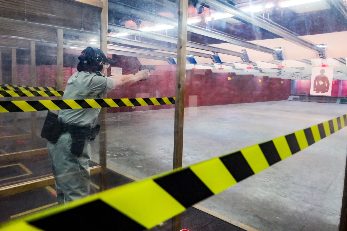 香港新聞網6月22日電(記者 許其皓) 香港警隊6月22日在香港警察學院舉辦“警察招募.體驗日”,主題為“同行.致遠”,招募見習督察、警員及輔警。參加者可透過一系列活動體驗警隊遴選程序、警察學院訓練及了解多元化的警務工作。 當天,傳媒代表獲安排參觀部分環節,包括靶場體驗站,以及今次新增的兩項互動體驗項目“密室追兇”及“鑑證先鋒”,模擬罪案現場,讓參加者親身體驗偵查和搜證工作。