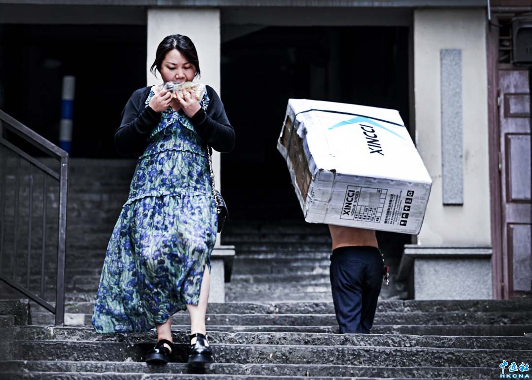 據中國國家統計局網站6月16日消息,1-5月份,中國城鎮調查失業率平均值為5.2%。5月份,中國城鎮調查失業率為5%,比上月下降0.1個百分點。圖為重慶港渝廣場,匆忙上班的市民與扛著重物的工人擦肩而過。(香港中通社記者 徐文峰攝)