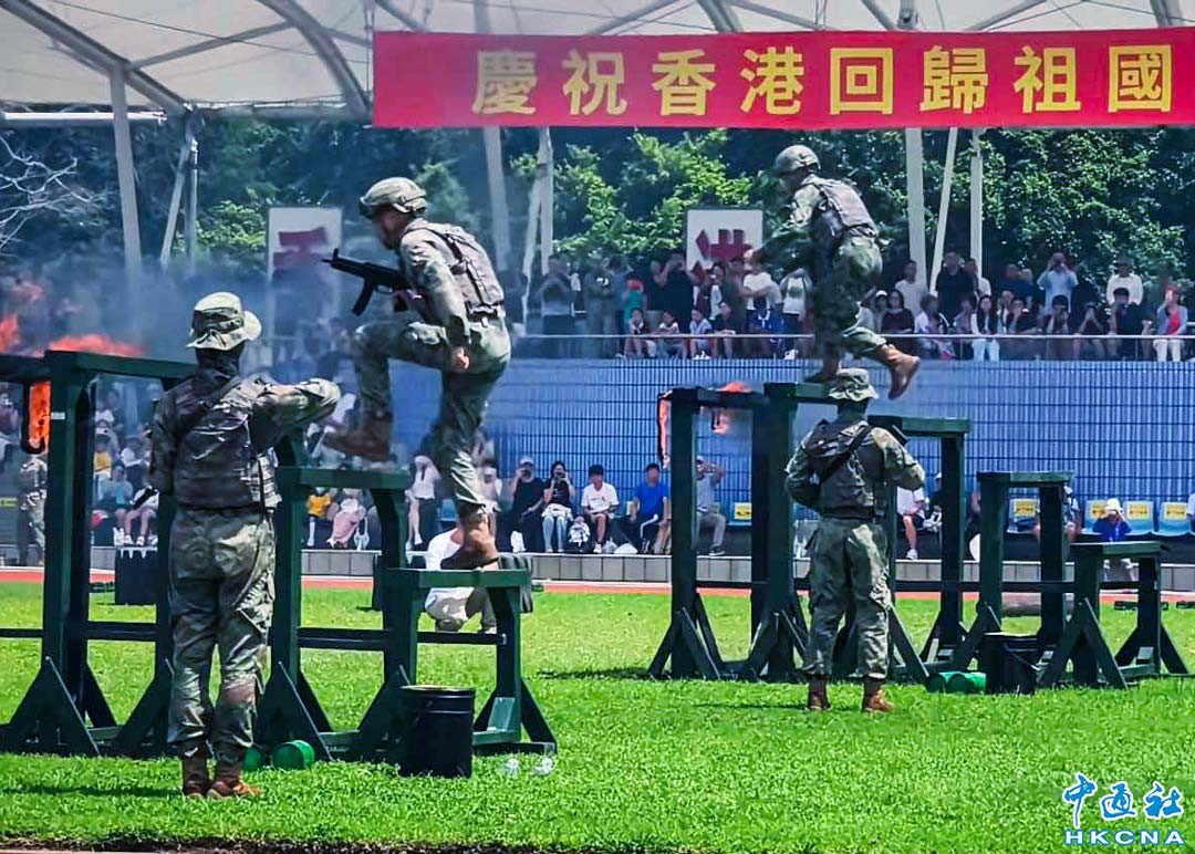 為慶祝香港回歸祖國28周年,中國人民解放軍駐香港部隊昂船洲、石崗及新圍三個軍營於6月21日至22日舉行開放活動。升國旗儀式、軍樂隊列、裝備展示、訓練體體驗、軍營食品品嚐等豐富活動,吸引眾多市民前往興奮打卡。21日上午,昂船洲軍營率先開放,吸引眾多市民排隊入場。(香港中通社記者 梁嘉軒攝)