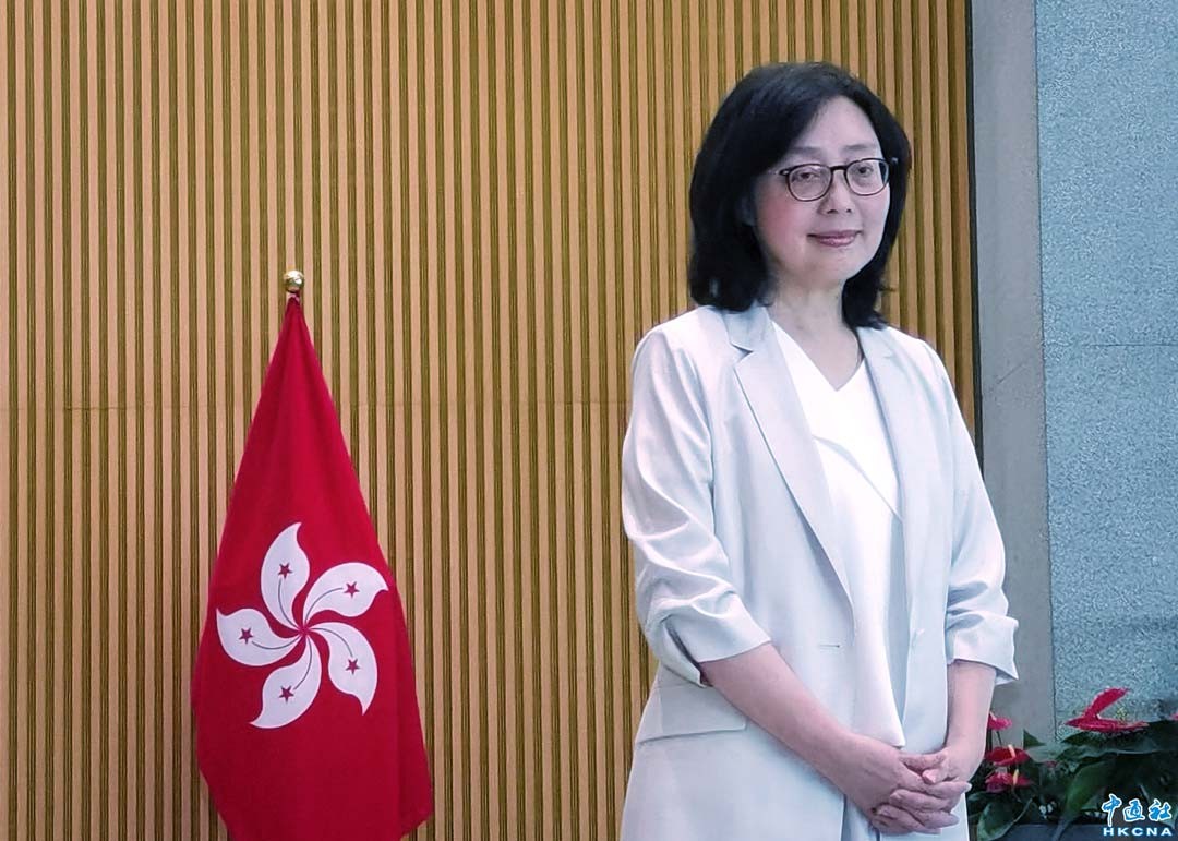 香港國安法今年公佈實施五周年,特區政府發展局局長甯漢豪接受中通社等媒體採訪,談香港發展。(香港中通社記者 譚暢攝)