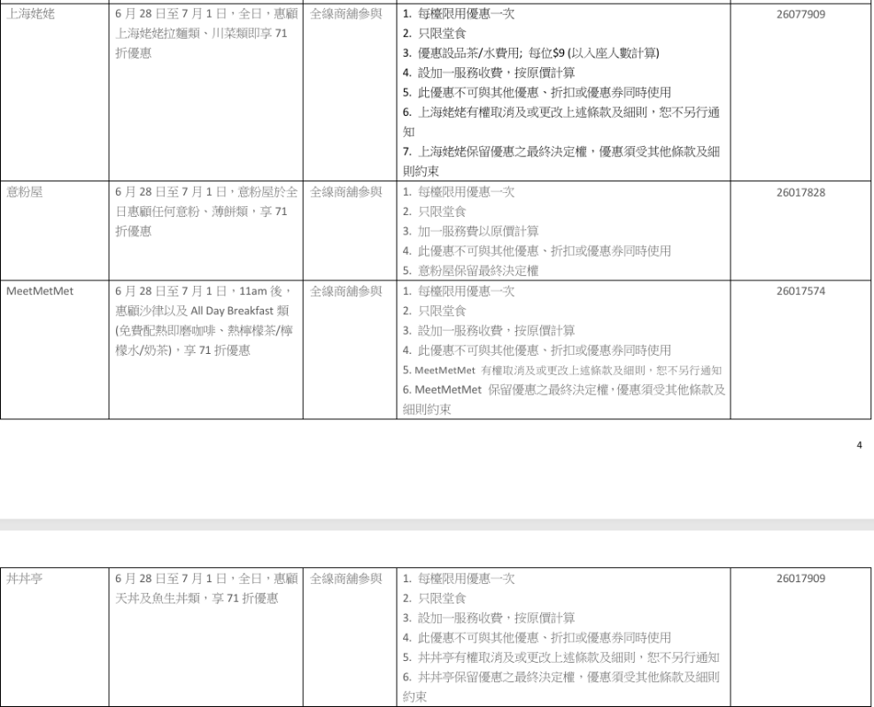 優惠餐廳名單長達70頁,點擊鏈接自取:https://drive.google.com/file/d/16bqP1axopbx3UsMffu8y1jKr6iv_Favy/view