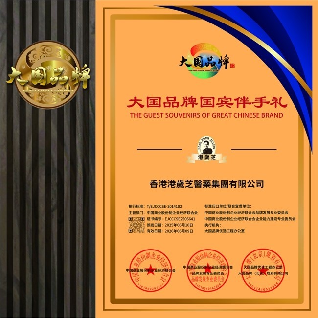 香港新聞網6月27日電 在全球健康消費浪潮洶湧的當下,東方食養文化正以獨特的魅力與深厚的底蘊,重新占據人們的視野。近日,香港港歲芝醫藥集團有限公司旗下核心品牌“港歲芝”正式獲授“大國品牌國賓伴手禮成員單位”資質,這份榮譽不僅是對品牌實力的認可,更意味著東方食養智慧正以國禮的身份,走向世界舞台的中央。