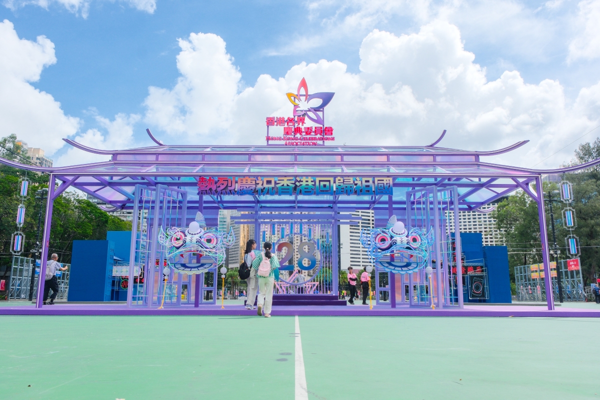 慶祝香港回歸祖國28周年活動於維園舉行,展覽入口以中國古代門樓設計為藍本。