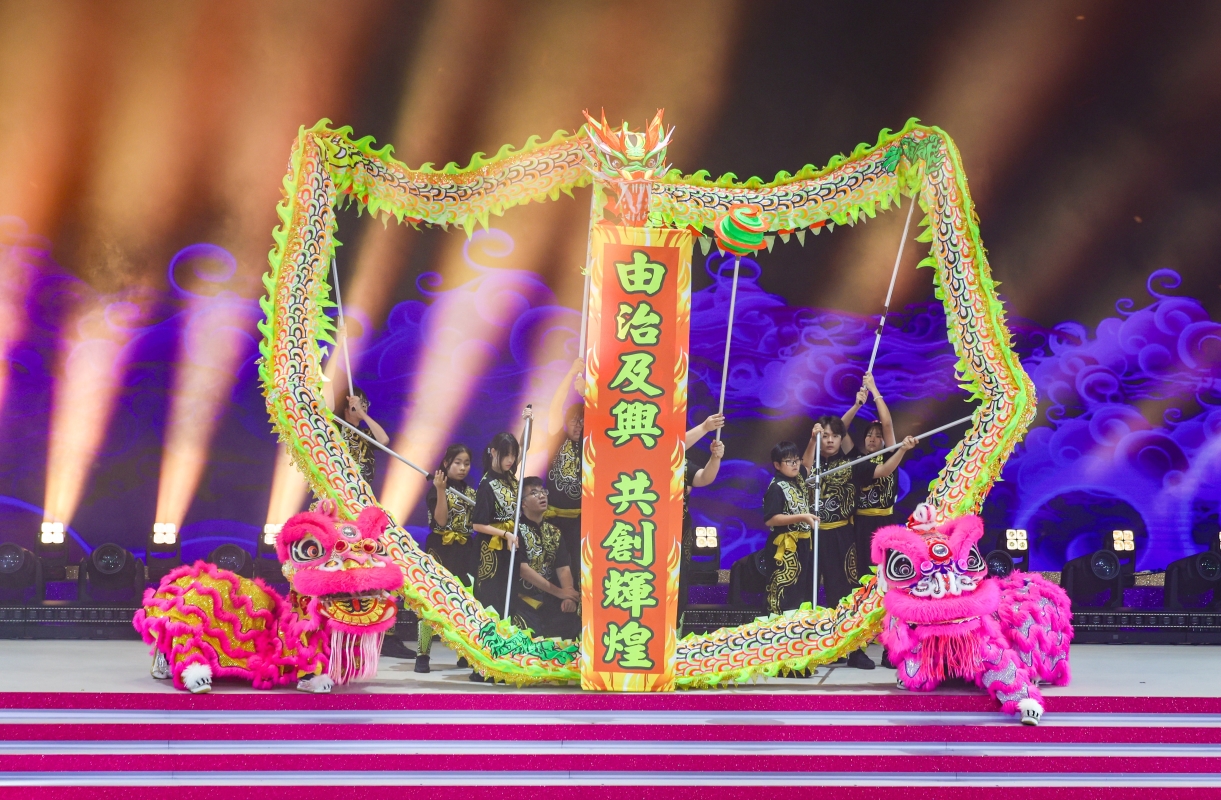 香港新聞網6月30日電(記者 曹文毓) 6月30日,香港各界慶典委員會在紅磡香港體育館舉辦大型文藝晚會“星耀紫荊慶回歸”,演出涵蓋歌唱、舞蹈、武術、霹靂舞等,肥媽、陳展鵬、Hey Brother等多名藝人登台演出。