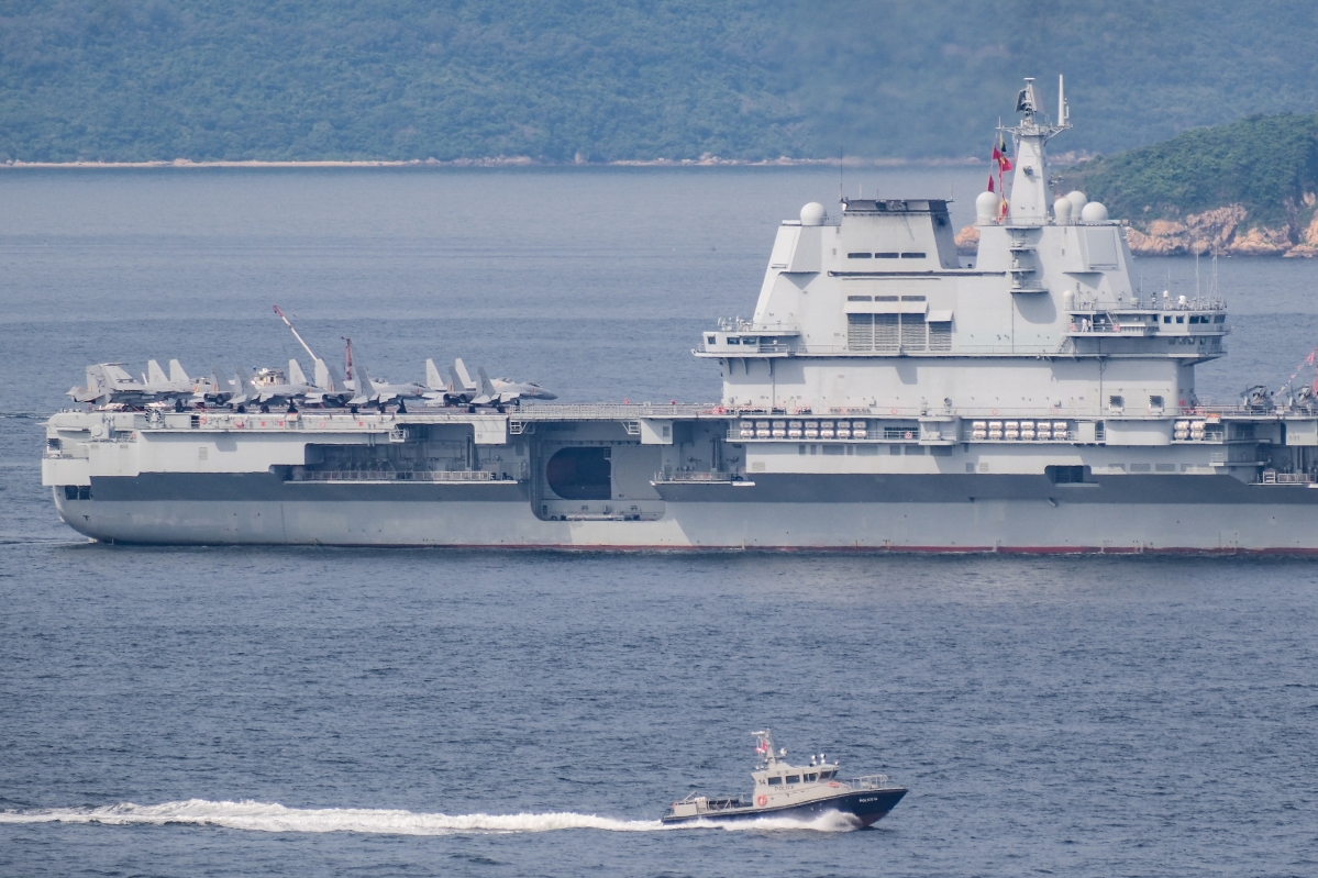 山東艦航空母艦編隊抵達香港