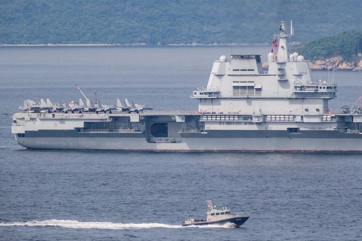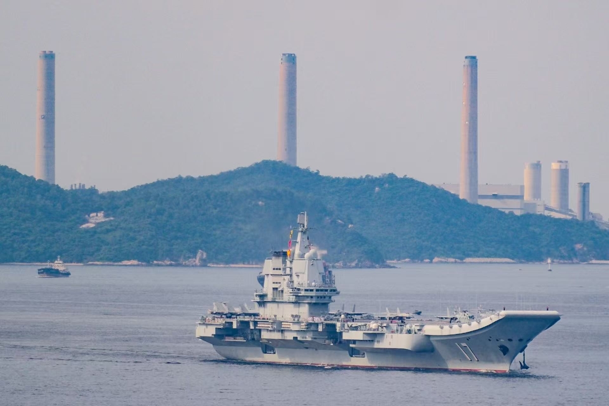由航母山東艦、導彈驅逐艦延安艦、湛江艦,導彈護衛艦運城艦組成的海軍艦艇編隊抵達香港