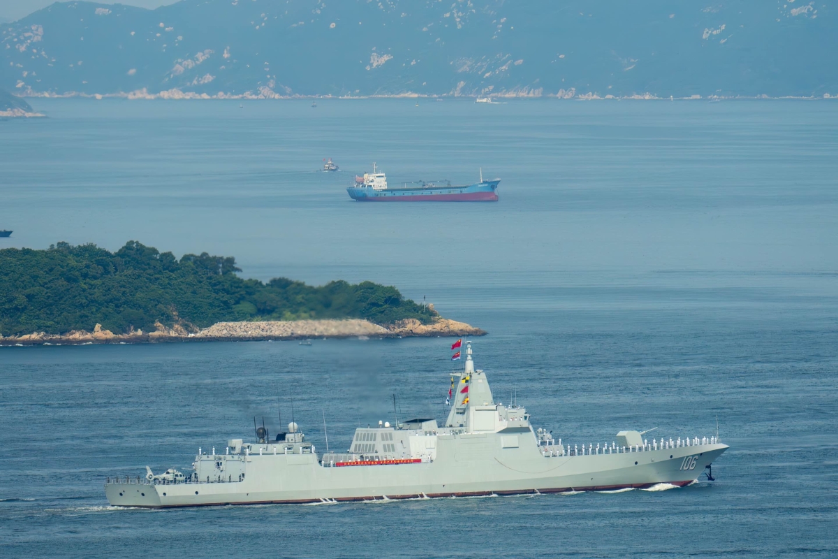 萬噸大驅”延安艦”(舷號106)進入香港水域。(蔡志東 攝) 【編輯:洪少葵】