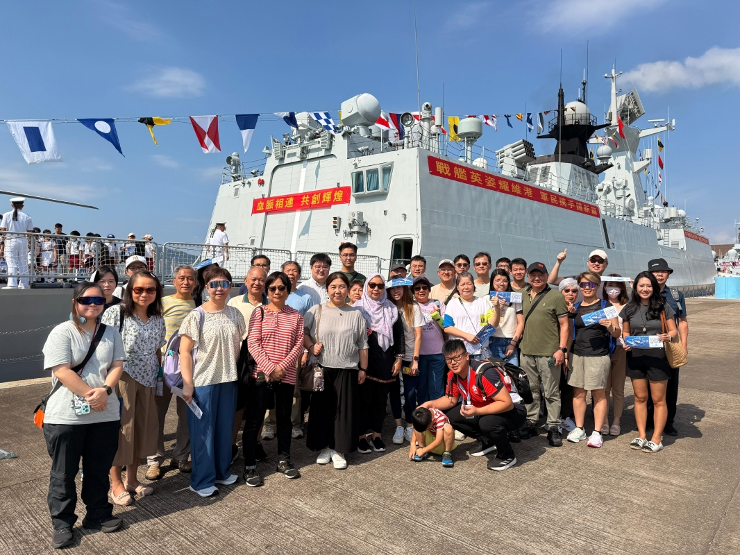 香港新聞網7月4日電 港專學院及香港專業進修學校(“港專”)校董、教職員、學生及校友逾百人,今日榮幸參觀訪港的中國海軍山東艦編隊,登上國產航母山東艦、導彈驅逐艦湛江艦及導彈護衛艦運城艦參觀。港專成員在“博學課堂”實踐教學中,近距離領略國家海軍的現代化成就與官兵的專業風範,增強了家國情懷與民族自豪感。 參觀團分組登上三艦,山東艦甲板上巨幅國旗莊嚴鋪展,官兵現場講解航艦作戰體系,與參觀者親切交談。港專校長陳卓禧教授表示:“走上山東艦,近距離接觸大國重器、我國第一艘自主設計建造的航母,還有新型戰機,倍感自豪。有軍隊護國安邦,香港繁榮安定就有保障。今日組織港專師生一同參觀,是一次生動而深刻的愛國主義教育課堂,讓學生深刻體悟‘國安才能家好’的道理。”