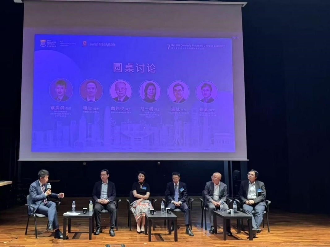 第七屆“香港大學中國經濟季度論壇”探索中美貿易演化格局、國家宏觀經濟態勢及未來圖景香港新聞網7月5日電 7月4日,由港大經管學院中國經濟研究所與複旦經院全球校友會香港聯絡處聯合主辦的第七屆“香港大學中國經濟季度論壇”在港大月明劇院落幕。論壇匯聚多位經濟領域專家學者與工商界領袖,聚焦全球變局下中國經濟增長動能,圍繞穩定幣、貿易戰等熱點議題,剖析宏觀經濟機遇與挑戰,為經濟政策走向與發展趨勢提供洞見。出席本次活動的嘉賓包括港大經管學院院長兼經濟學講座教授及中國經濟研究所所長蔡洪濱、復旦大學經濟學院全球校友會香港聯絡處主任及摩根大通銀行執行董事董琦、香港大學經管學院經濟學實務教授、香港特別行政區行政長官政策組專家毛振華、金融學講座教授、寶光基金教授及香港大學副校長林晨、香港大學經管學院副院長鄧希煒、京東集團副總裁、首席經濟學家,復旦大學經濟學院客座教授沈建光、香港大學榮譽研究員程子芮等超 200 位工商界人士、學者、校友及學生參會,現場交流熱烈,為中國經濟高質量發展凝聚智慧與力量。