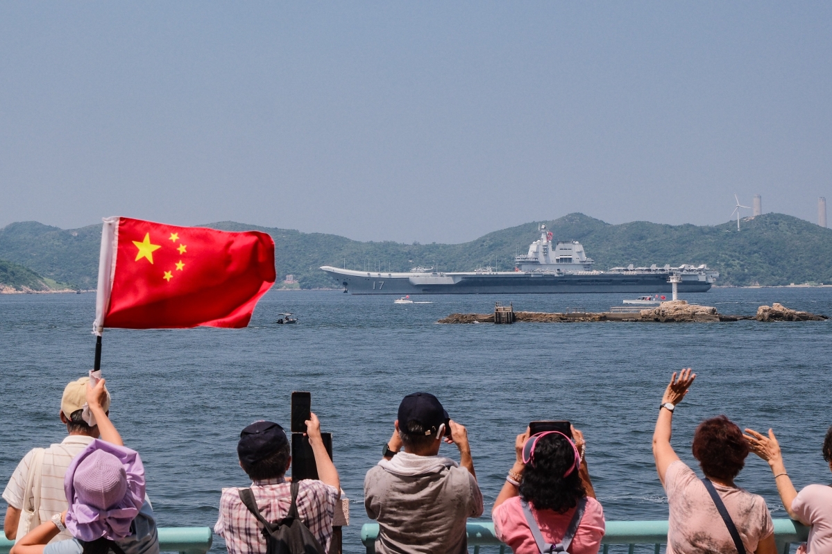 香港新聞網7月7日電(記者 許其皓) 7月7日上午,中國人民解放軍海軍山東艦航母編隊離開香港,結束為期5天的訪港行程。大批市民在各區海濱送別山東艦航母編隊離港。 7月3日至7日,由航空母艦山東艦、導彈驅逐艦延安艦和湛江艦、導彈護衛艦運城艦組成的海軍艦艇編隊訪問香港。 其中,7月5日至6日,山東艦在西面2號錨地面向香港市民開放,派票2000張; 湛江艦、運城艦在昂船洲軍港開放,派票8000張。