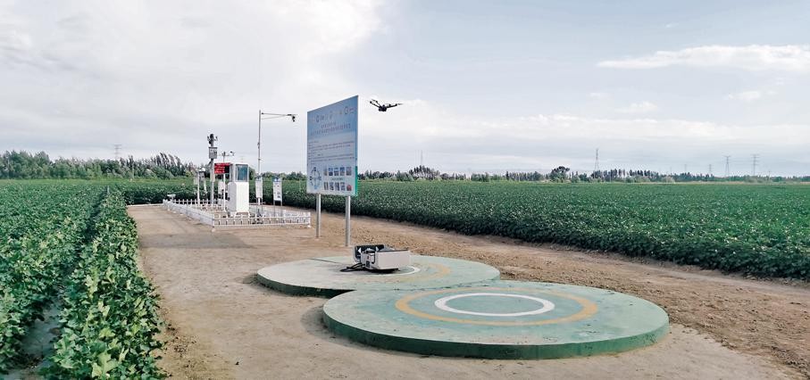 香港新聞聯高層參訪團走進新疆天業蘑菇湖現代農業科技示範基地,考察棉花生產加工情況。圖源:香港新聞聯 農業基地的一位工作人員告訴記者,過去這裏地下水位高、鹽鹼大,不適合種植農作物,但借助科技賦能,現在基地地下水位由20cm降至1.8cm以下,土壤含鹽量由17‰降至3‰以下,pH值由8.7降至7.3,水資源利用率提升至0.75以上,節約土地7%-12%,農機作業費降低20%-25%,節肥15%-20%。基地棉花單產穩定在500公斤以上。 “空天地”監測 耕種精準調控 正當記者聚精會神採訪之際,“滋滋……”一架無人機突然從記者身後騰空而起。原來這裏已經運用“空、天、地”技術,實現了農情監測與精準調控。蟲情測報燈、一體化氣象站、苗情檢測系統助力科學農事,實現遠程控制與實時反饋。一幅智慧農業的生動畫面此時此刻真正變得具象化。