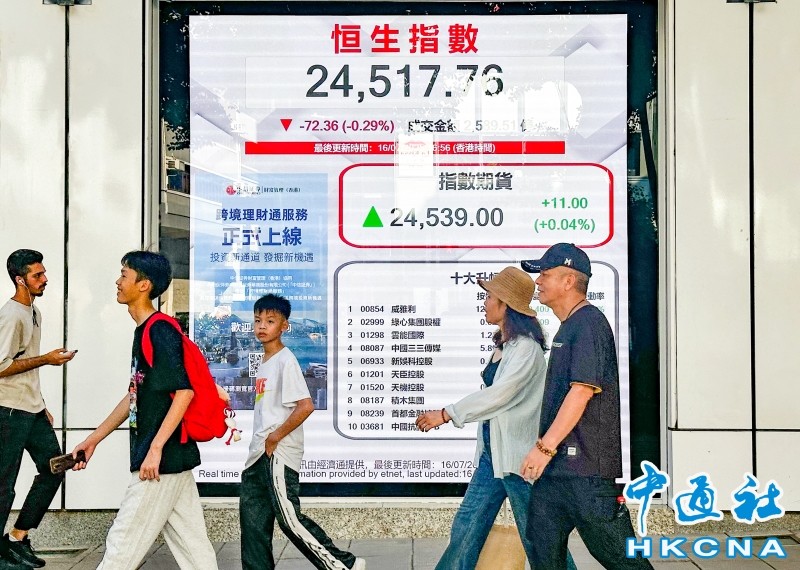 香港中通社7月16日電(記者 譚暢)港股16日高開低走,恒生指數全日跌72點或0.3%,報24517點,是全日低位。大市全日成交約2589.5億港元。