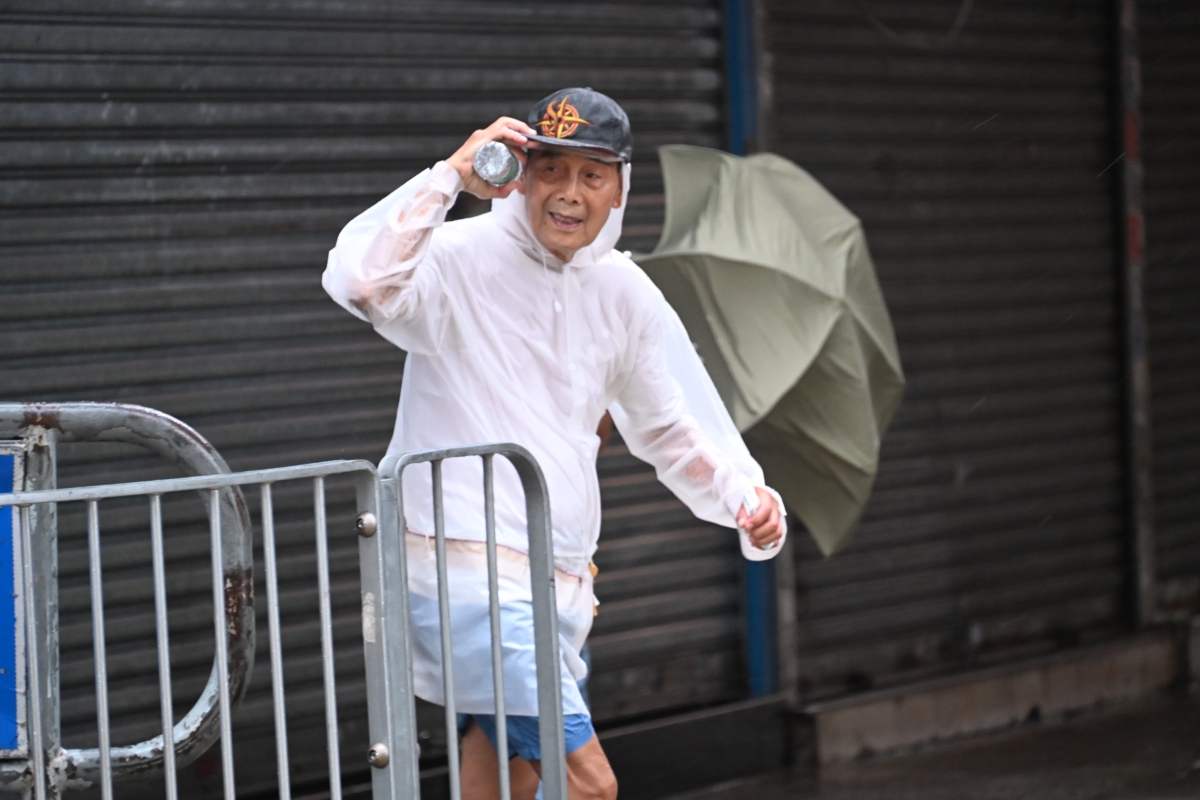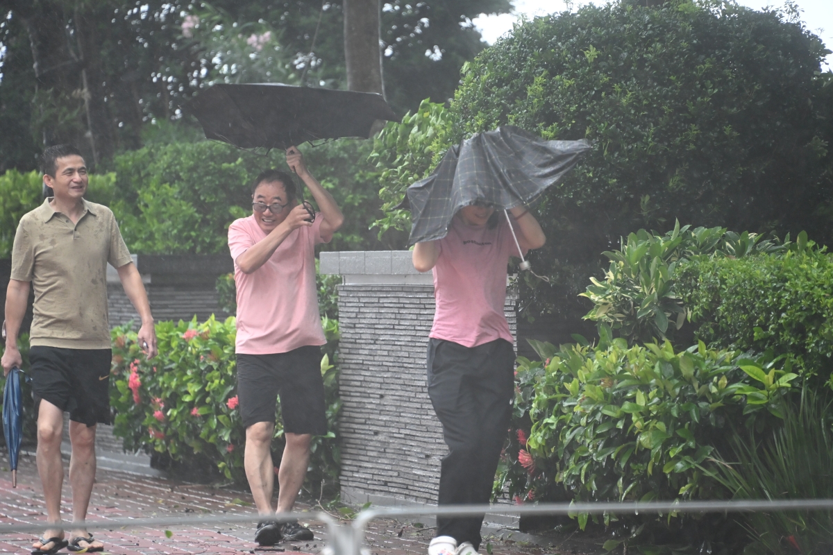 市區受到台風“韋帕”影響,市民在狂風暴雨下,舉步維艱