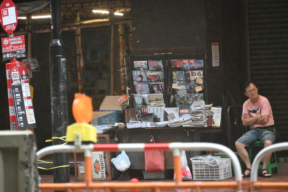 十號強颱風下街頭的報刊攤位 【編輯:洪少葵】