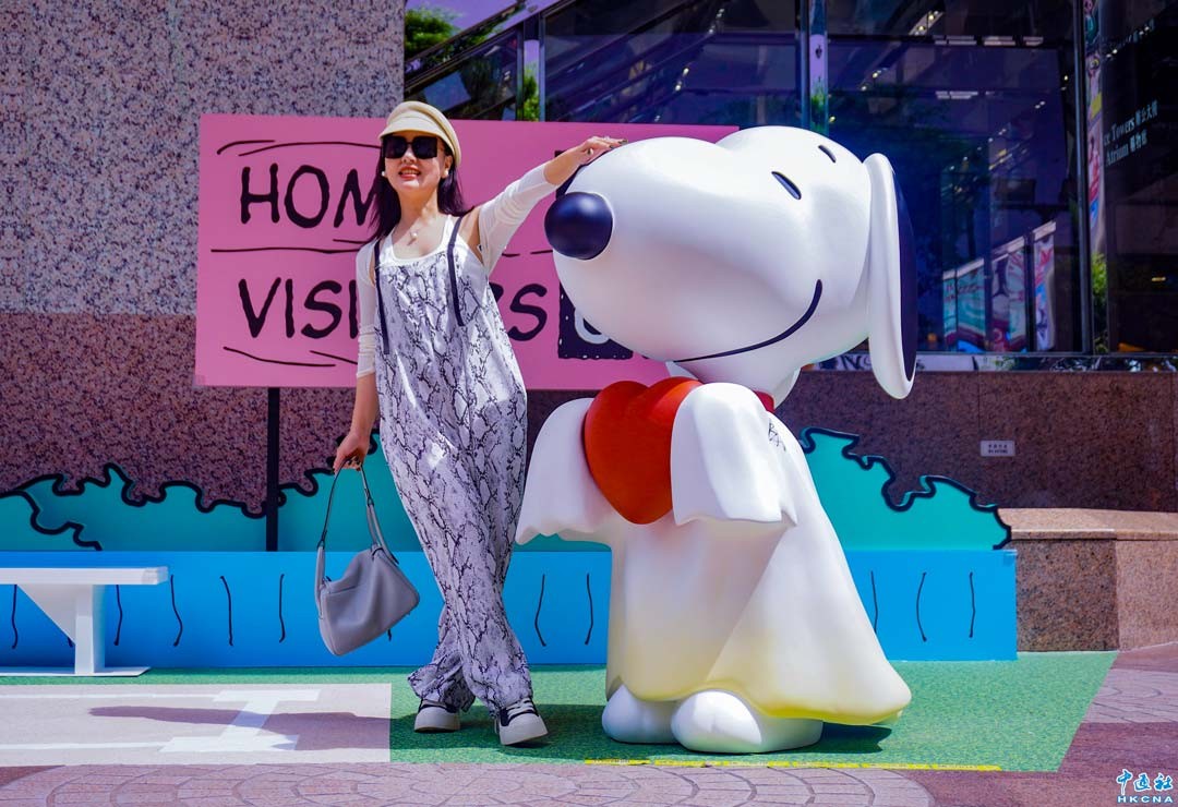 為慶祝《花生漫畫》75周年,主題展覽“Art for All” for Peanuts 75th Anniversary於7月至9月登陸香港銅鑼灣時代廣場,以香港為首站,今次《花生漫畫》展覽聚焦於藝術家聯乘 Snoopy作品,展出3米高巨型Snoopy和大型藝術裝置。(香港中通社記者 曹文毓攝)